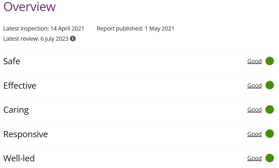 We take pride in maintaining a “Good” CQC rating while striving to improve every aspect of our day to day operations to elevate them to “Outstanding” standards.